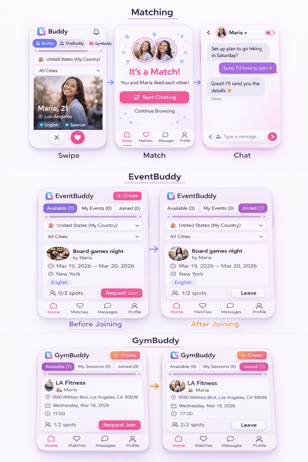 Messaging unlocks only after two profiles mutually match. No unwanted messages or spam—every conversation is mutual and respectful.