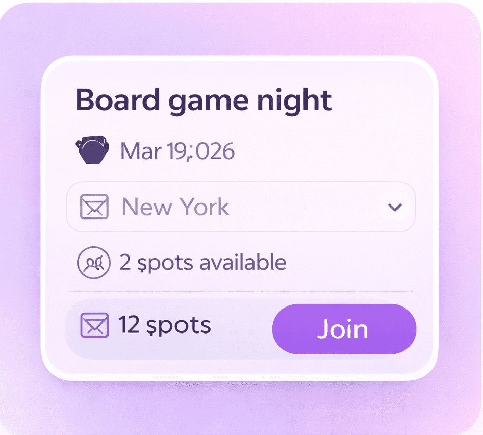 Easily create or join local events to meet people who share your interests.